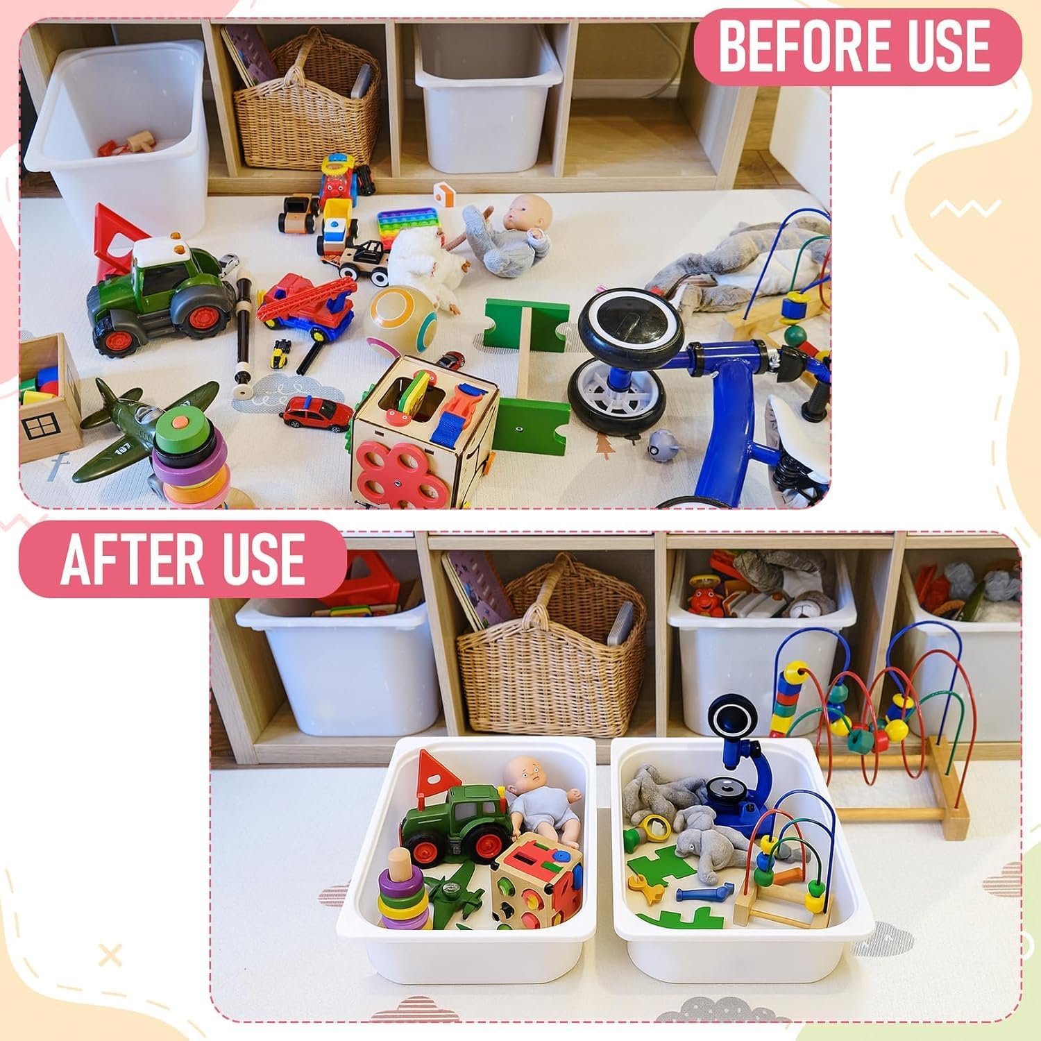 - This shallow, white box is perfect for storing chalks, building blocks and puzzles. Made of durable plastic and fits in TROFAST frames, but can also be stacked on the floor if you complete with a lid.