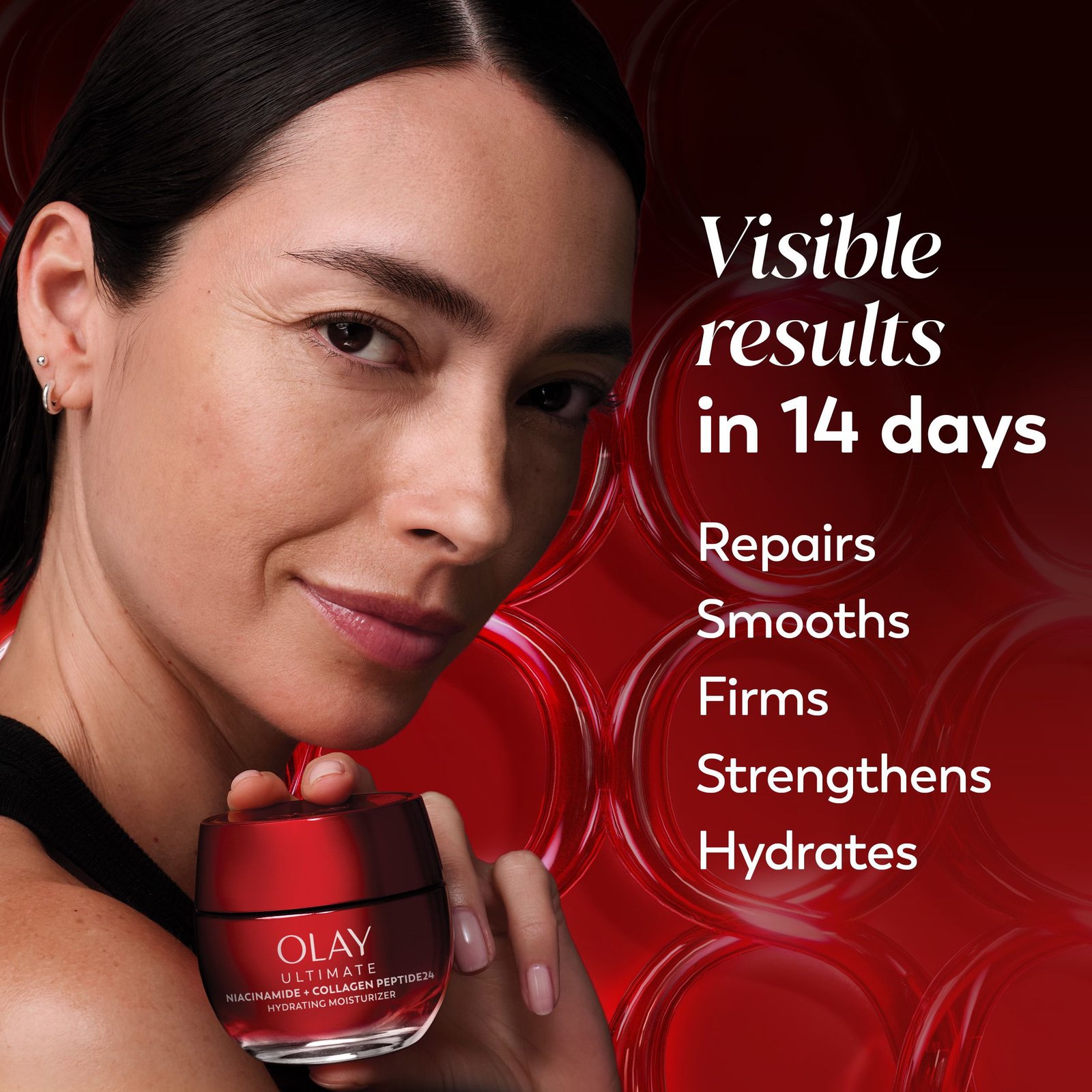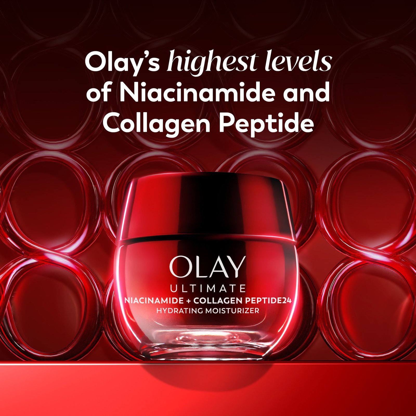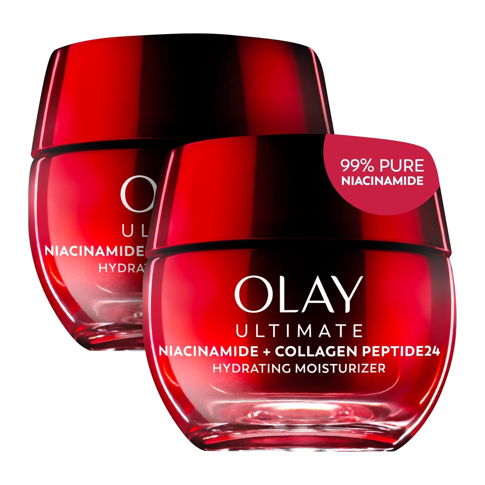 Olay Ultimate Niacinamide + Collagen Peptide24 Face Moisturizer is supercharged for instant visible wrinkle and firming results. It strengthens skin barrier, evens complexion, and visibly corrects wrinkles. It’s crafted by our top scientists with our clinically proven technology, with 99% pure Niacinamide, to improve skin’s moisture barrier for 2x stronger skin*.