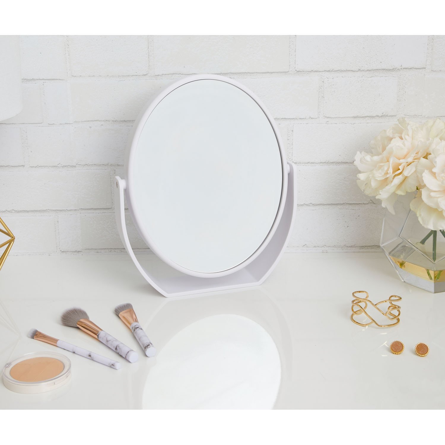 Measuring 6.75 inches wide and standing 8.1 inches tall, this lightweight mirror is ideal for any countertop or vanity space. Its portable design makes it easy to take with you wherever you need it, ensuring functionality on the go.