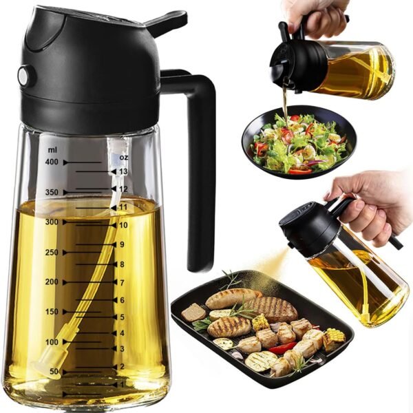 - Dual Dispensing: This oil mister offers both spray and pour options for total control while cooking. It’s a versatile oil dispenser bottle spray and pour as needed to keep your kitchen clean, organized, and efficient.